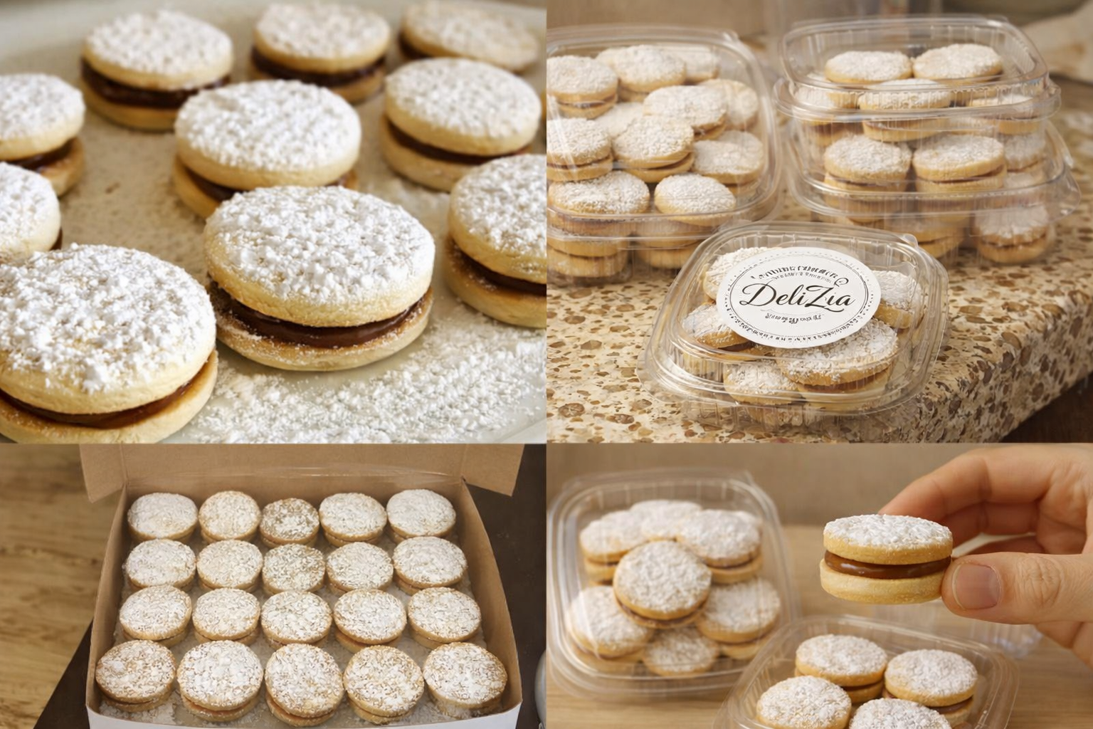 Nuestros alfajores peruanos son el corazón de Delizia. Elaborados artesanalmente, destacan por su textura suave y delicada, su relleno generoso de dulce de leche y un equilibrio perfecto entre dulzura y sabor. Cada alfajor evoca recuerdos, hogar y tradición. ¡Pruébalos y entenderás por qué siempre vuelven por más!